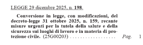 Pubblicata la legge 29 dicembre 2025, n. 198.